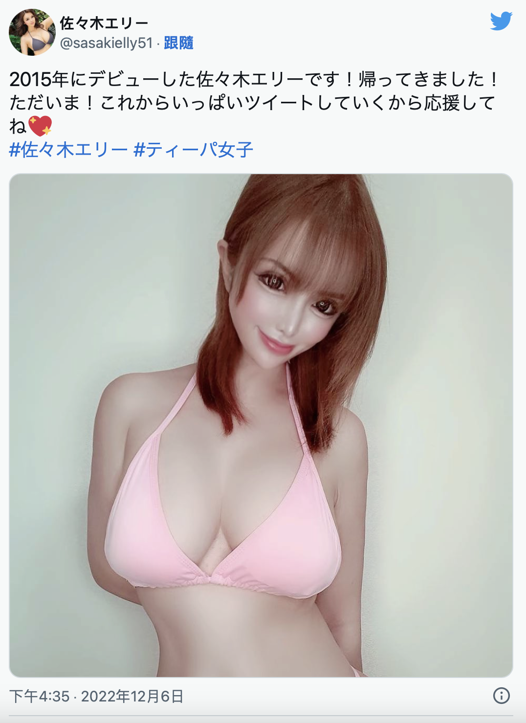 是的,没错,佐々木エリー(佐佐木艾丽)复活了!