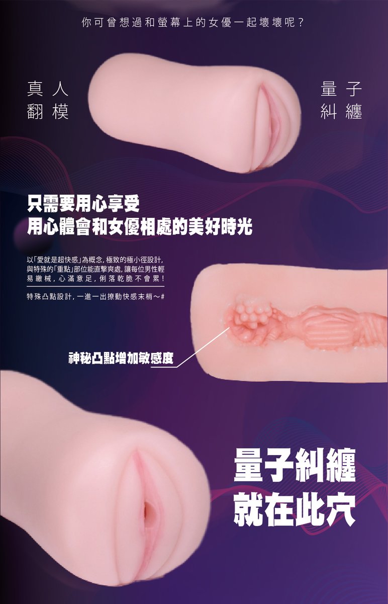 所以她与性福觉醒联名推出了这款自慰套:这并非国内厂商第一次和名人合作推出名器,之前鸡排妹郑家纯也用募资的管道推出了自己的名器,那这款沐沐杯和那款名器有什么不同呢?首先,郑家纯推出的名器没有她的鸡排,但沐沐这款名器却有她的鸡掰,内外全翻模的输出让你没办法和她拍AV也知道她是紧是松,有朝一日碰到那位石巴朝时可以互相讨论一下进去的感觉;再来,透过高超的技术,沐沐杯不只有比真人还要Q弹的触感还有真空吸引的魔力,可说是最高水准的翻模名器!