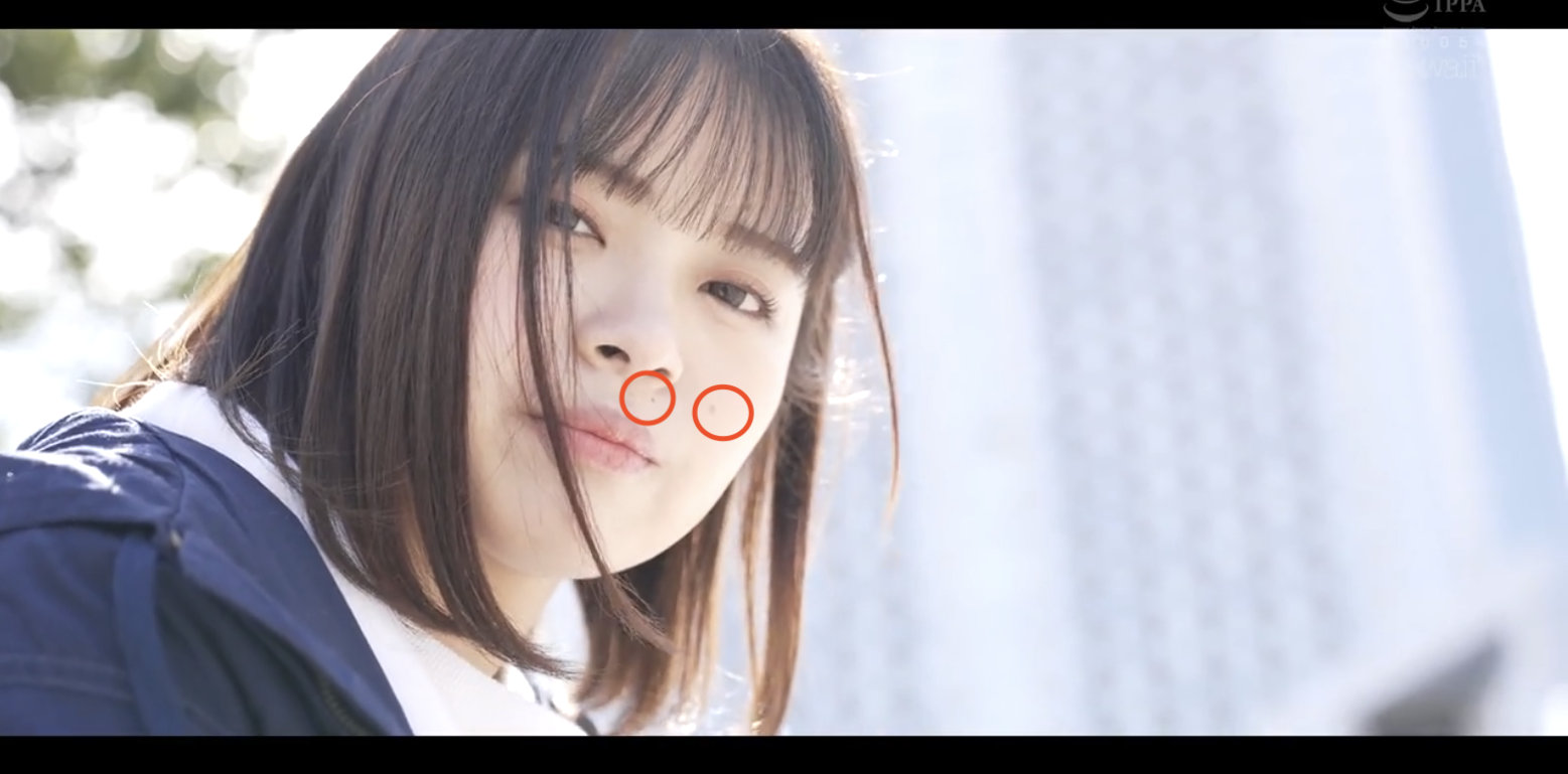 透过嘴唇上方以及脸颊上的痣我们就可以确定她就是在片商kawaii*出道的「七绪ひみか(七绪绯美佳)」:她是去年暑假出道的好手,因为被认为是広瀬すず(广濑铃)的明星脸,所以片商是直接用专属契约「框」了下来,给了她5支作品的机会⋯