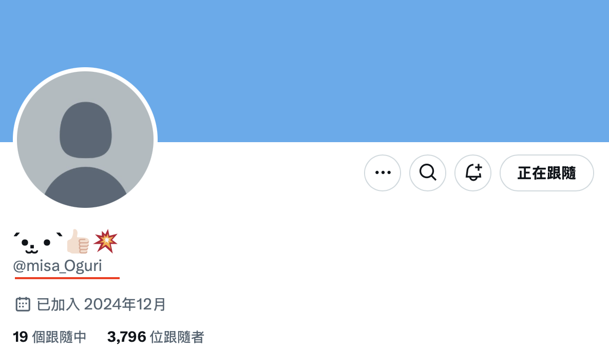 这是一个才刚成立的x帐号(https://x.com/misa_Oguri),名字的部分只是一堆符号,但这张照片竟然有超过130个转推,你知道为什么吗?