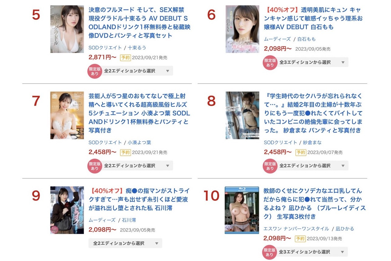 马上来看FANZA(DMM)刚刚公布8月销售排行榜!