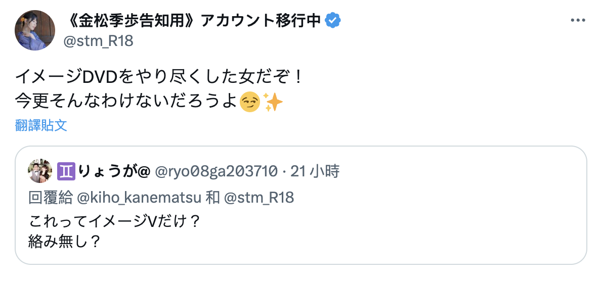 金松季歩是在自己的X(https://twitter.com/stm_R18)说了,Muteki这家片商就是片子没发出来前不会给你看封底的,意思就是说问题不是出在我身上,要怪就怪片商喜欢吊胃口—不过大家想看封底的道理也很简单,就是要确定金松季歩的这次作品到底演了什么?是写真还是AV、如果是AV那是打真军还是玩假炮?虽然答案很快会随著作品上市揭晓,但大家还是想提前知道⋯