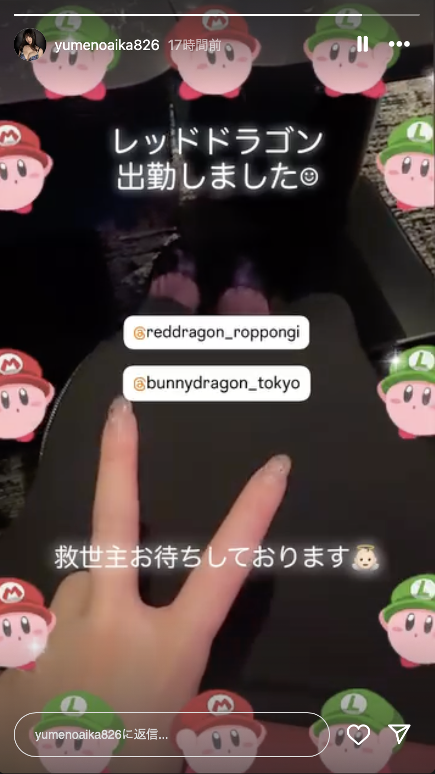 我们都知道她已经好久没有作品也没有公开的活动,我们也都知道她固定会去レッドドラゴン(红龙,RedDragon)出勤陪酒然后在IG限动上Po文希望有救世主捧场(https:// www.instagram.com/yumenoaika826/),但不要说主办单位了,我自己也超想看到她站在TRE的舞台上让大家发出兴奋的狼嚎,所以收到主办单位的名单后我们不但和事务所做了完整的说明,还有好几个去レッドドラゴン(红龙,RedDragon)玩的台湾粉丝也和梦乃あいか(梦乃爱华)说参加TRE好处多多,请她务必参加: